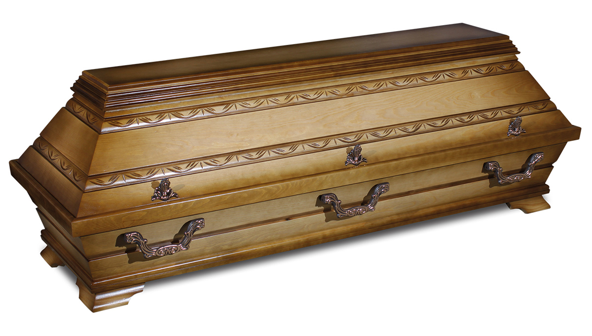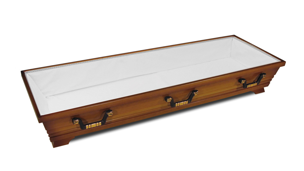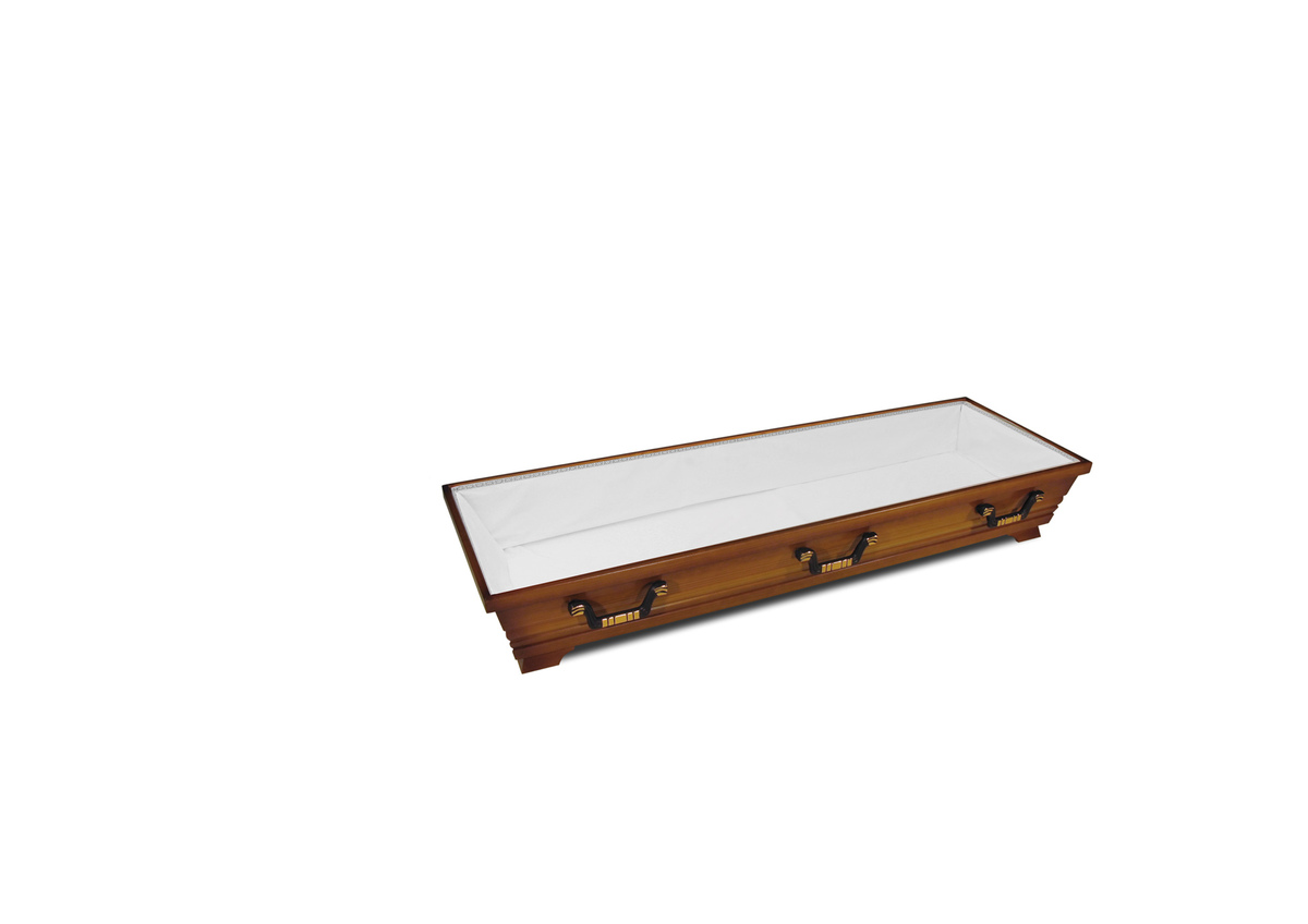 Sarg „Friedrich II.“ – klassisch. edel. würdevoll. Der Sarg „Friedrich II.“ steht für zeitlose Eleganz und traditionelle Handwerkskunst. Gefertigt aus massiver Kiefer und veredelt in einem warmen Nussbaumton, verkörpert er Beständigkeit und Ruhe. Feine Perlstäbe zieren den Deckel und verleihen dem Sarg eine dezente, königliche Anmutung. Die sechs galvanisch altkupferfarbenen Griffe unterstreichen das harmonische Gesamtbild und setzen edle Akzente. Ein Modell, das mit seiner klassischen Formensprache und hochwertigen Verarbeitung Würde, Stil und Respekt miteinander verbindet – der „Friedrich II.“ ist eine Hommage an die traditionelle deutsche Sargkultur.