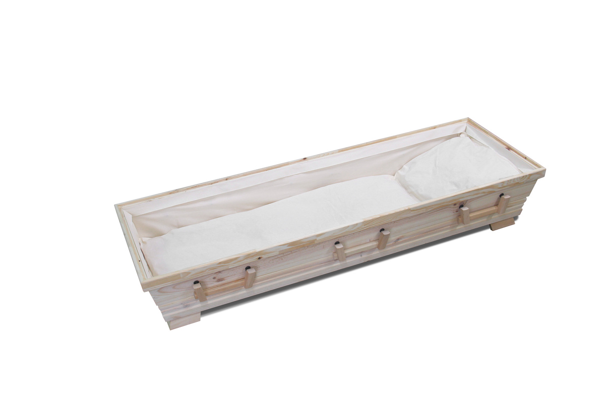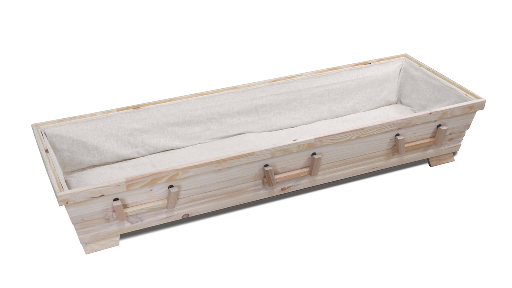 Der Sarg „Hedwig“ besteht aus naturbelassenem Pappelholz und überzeugt durch seine helle, freundliche Ausstrahlung. Die ruhige Maserung des Holzes wird durch eine dezente Rosenprägung ergänzt, die sich zurückhaltend über die Oberfläche legt. Sie steht sinnbildlich für Erinnerung, Zuneigung und Abschied – ohne sich in den Vordergrund zu drängen. Die klare Formgebung und die sechs Metallgriffe aus Edelstahl unterstreichen den sachlichen, zeitlosen Charakter dieses Modells. „Hedwig“ eignet sich besonders für Angehörige, die eine natürliche und schlichte Gestaltung wünschen, verbunden mit einem fein gearbeiteten Detail, das dem Abschied eine leise persönliche Note verleiht. Ein Sarg, der Zurückhaltung, Handwerk und Würde miteinander verbindet. #36518