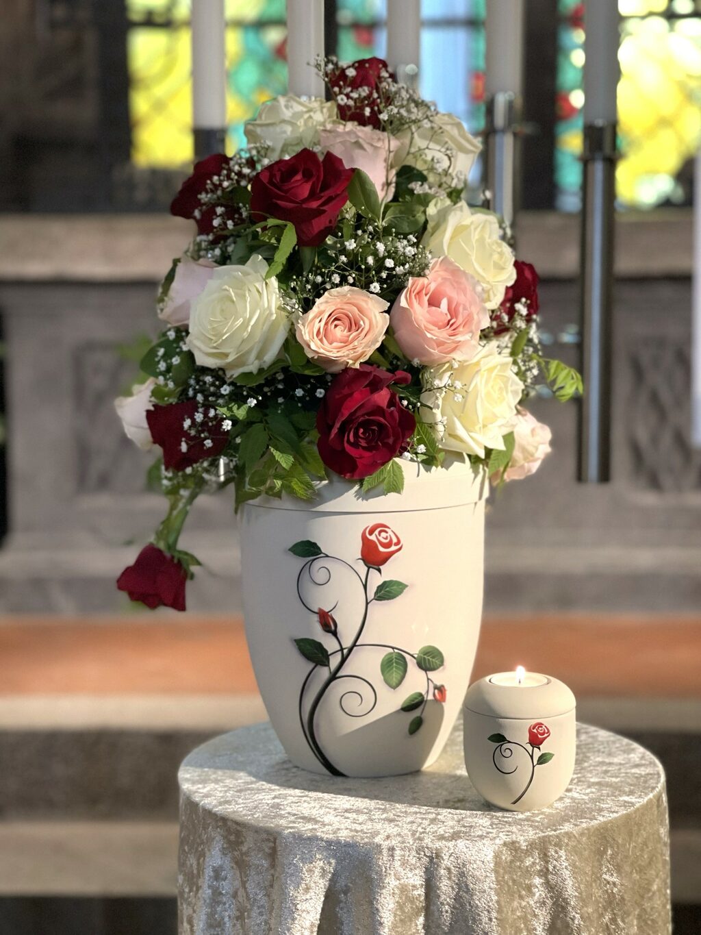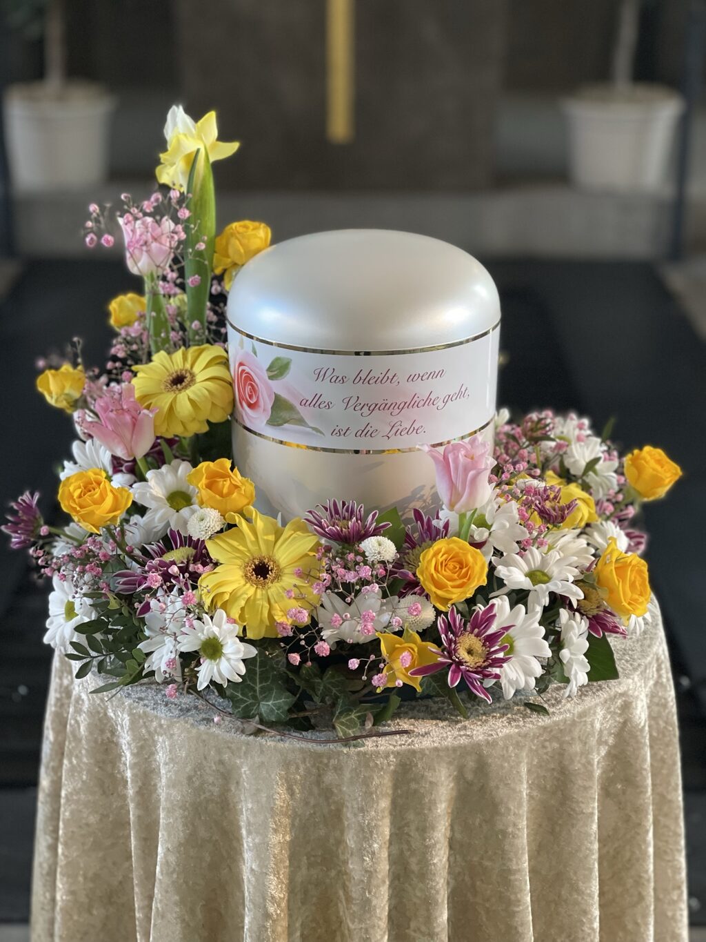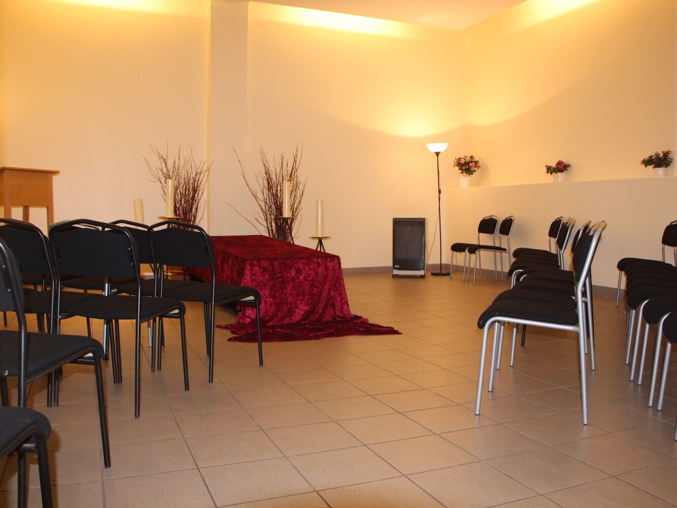 Im Krematorium können Trauerfeiern nach Wunsch gestaltet werden: als Urnenfeier oder als Sargfeier am geöffneten oder am geschlossenen Sarg.