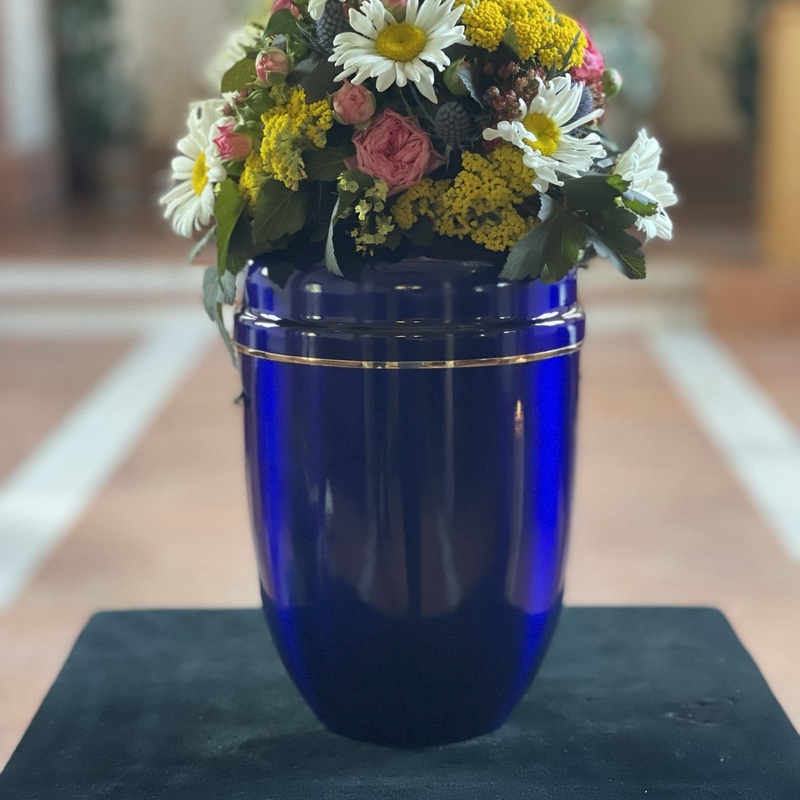 Sarg „Möllensee“ – modern, klar und außergewöhnlich. Der Sarg „Möllensee“ zieht durch sein einzigartiges Diamantblau sofort die Blicke auf sich. Gefertigt aus massiver Kiefer, verbindet er traditionelle Handwerkskunst mit einer modernen, ausdrucksstarken Farbgestaltung. Seine klare Linienführung und die sechs zinnfarbenen Gussgriffe verleihen dem Modell eine ruhige, kraftvolle Präsenz. Das feine Zusammenspiel von Farbe, Form und Material sorgt für eine würdevolle, zugleich zeitgemäße Anmutung. Das Modell „Möllensee“ steht für Individualität und Stil – ein Sarg, der in seiner Schlichtheit Stärke und Charakter ausstrahlt.