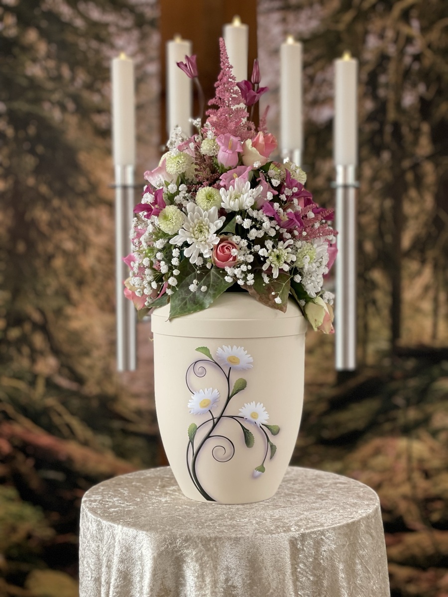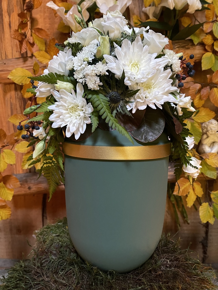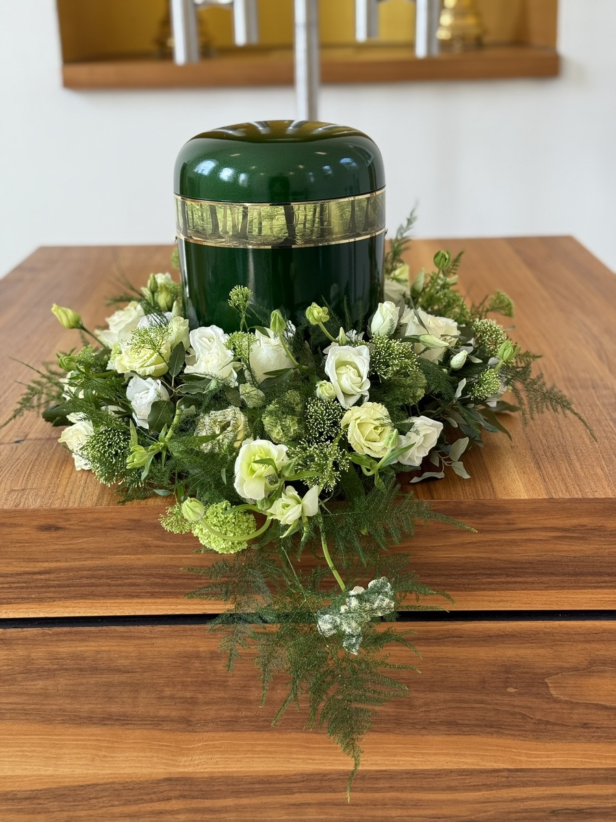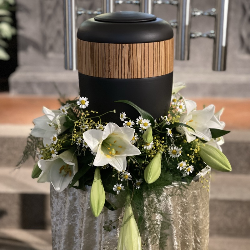 In unserem Ausstellungsräumen finden Sie eine Auswahl an Särgen, Sargausstattungen, Garnituren und Urnen für unterschiedliche Wünsche und Ansprüche.